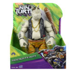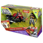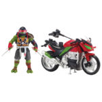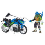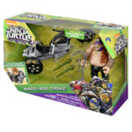 Each of the movie-inspired Cycles includes an exclusive action figure and unique ninja action. Cycles that feature ninja-flip action, where the figure will flip over the handlebars into battle position, include the Street Speeder with exclusive Leonardo, and the Ragin’ Racer with exclusive Raphael. Cycles that feature spring-powered missiles include the Warthog Trike with exclusive Bebop, Rhino Chopper with exclusive Rocksteady, and Polaris Slingshot with exclusive Michelangelo.
