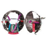 The Technodrome Playset opens to over two-feet wide and is packed with play areas. It includes two missile firing projectile launchers, a secret entrance and trap door slide that drops enemies into a jail.