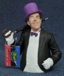 A Diamond Select Toys Release! Start saving for a rainy day with this umbrella-toting Penguin bank! Based on the criminal character’s appearance on the Batman Classic TV Series, this approximately 8” vinyl bank features the sculpting and paint of a high-quality bust, but the coin slot on his back and the access door in the base make it a great place to keep your loose change! Features the likeness of actor Meredith Burgess. Pair the Penguin with your Joker bank for the ultimate coin heist! Packaged in a clear polybag. Sculpted by Jean St. Jean. (Item # JAN162241, SRP: $22.99)
