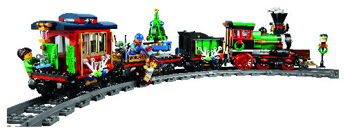 LEGO’s looking forward to the holidays with the introduction of the Winter Holiday Train. This model featuring a full circle of track, boarding platform with bench and lamppost, a Power Functions upgradable train engine with brick-built smoke bellowing from its stack, coal tender, flatbed wagon with a rotating holiday tree, toys and gifts, and a red caboose with a detailed interior and table. The train engine also features large and small red-colored locomotive wheels and the train is decorated with green wreathes, string lights and white tree elements. This LEGO® Creator Expert set includes 5 minifigures.