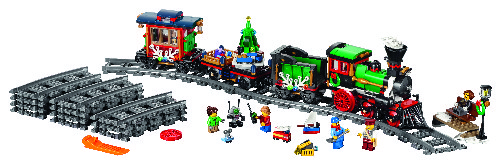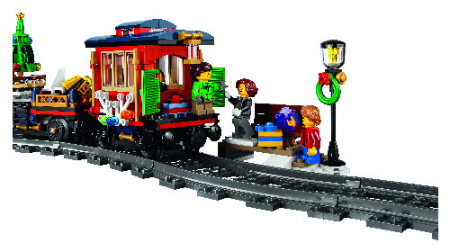 - The Winter Holiday Train includes 16 curved pieces of track, engine, coal tender, flatbed wagon with holiday tree, toys and gifts, caboose, boarding platform, bench and a lamppost.
