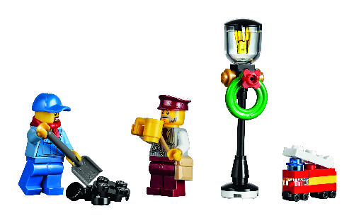 - Includes 5 minifigures: a locomotive driver, ticket collector, grandmother, boy and a girl.
