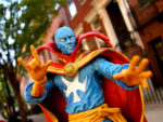 This exclusive variant figure of Doctor Strange depicts him in his mysterious masked superhero appearance, first seen in 1968’s Doctor Strange #177. The figure stands approximately 7 inches tall with 16 points of articulation, allowing him to strike a wide variety of dimension-shattering poses. Accessories include a removable cape, a separate Eye of Agamotto medallion on a chain, a spell-casting energy effect that attaches to his hand, and an interchangeable unmasked head!