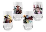 A Diamond Select Toys release! Raise a toast to the Pumpkin King with these four tumblers celebrating The Nightmare Before Christmas! Featuring all-new artwork inspired by the film, these fast-food-style glass tumblers also have mini-biographies of each character on the reverse side, and spotlight Jack, Sally, Oogie Boogie and the Mayor, along with some of Halloween Town’s other residents. Recommend hand-wash only. Each glass is individually packaged in a full-color window box.