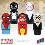 Also in 2017, Bif Bang Pow! introduces dozens of beloved, classically-styled Pin Mate™ wooden figures. For Spidey fans, the Spider-Man Pin Mate Wooden Figure Set of 5 gathers Spider-Man (#11), with a new Agent Venom (#46), Spider-Woman (#37), Spider-Gwen (#36), and Black Cat (#15) into one swinging collection.
