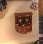 I’ve fixed that now with the help of a 3D printer, in fact the keyhole hanger I made is my first original 3D model and print. I printed two mounts, glued them to the inside of the balcony, put two thumbtacks into the wall (6″ apart) and now the Statler and Waldorf sit perched to the right of my desk hurling insults my way all day.