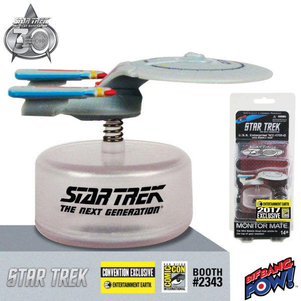 Entertainment Earth has announced their latest SDCC exclusive, a Bif Bang Pow! Monitor Mate of the Enterprise from Star Trek: The Next Generation. The out-of-this-world Star Trek: The Next Generation Enterprise Monitor Mate™ Bobble Ship with a clear base is crafted of PVC plastic, the miniature bobble starship measures about 2 5/8-inches long x 1 7/8-inches tall (including the base) x 2-inches wide.