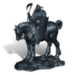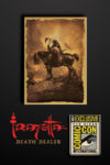 Based on the classic painting by legendary fantasy artist FRANK FRAZETTA, Moebius Models’ styrene kit of the DEATH DEALER is a faithful recreation of the ominous character on his mighty steed, fully rendered in three dimensions. This exclusive SIGNATURE EDITION is part of an extremely limited release molded in Midnight Black, and includes a unique numbered signature sleeve signed by Frank Frazetta, Jr.,son of the legendary artist; Jeff Yagher, master sculptor; and Frank Winspur, president of Moebius Models. Purchase includes an exclusive lapel pin featuring the DEATH DEALERinsepia-tone on a bronze-colored metal backing. This 1:10 scale, precision-tooled kit is approximately 10 inches tall fully assembled. The kit includes a detailed display base, real metal chains and complete assembly instructions. Cement and paint are required for assembly — not included.
