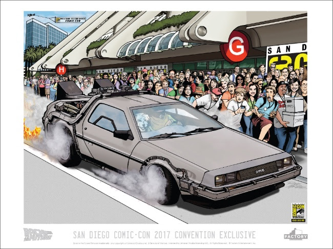 Factory Entertainment has announced their latest Back To The Future convention exclusive, an 18 x 24 inch print which features original and highly detailed artwork by fan favorite Randy Martinez. Experience San Diego Comic-Con with everyone’s favorite time traveling hero in his “hazmat” suit with loyal companion Einstein speeding across the front of the iconic San Diego Convention Center.