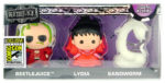 Limited to 300 pieces and priced at $25 this set includes 3 foam keychains, Beetlejuice, Lydia and the Sandworm. Both Beetlejuice and Lydia are in their red wedding outfits and the Sandworm is translucent.
