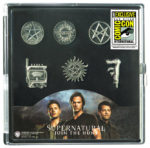 Limited to 400 sets, this is Monogram’s first Supernatural pin set. Pins included in this set are the Devil’s Trap, the Supernatural logo, the Men of Letters Aquarian Star, an EMF reader, the Anti-possession tattoo and the Mark of Cain. This set of six lapel pins is priced at $30.