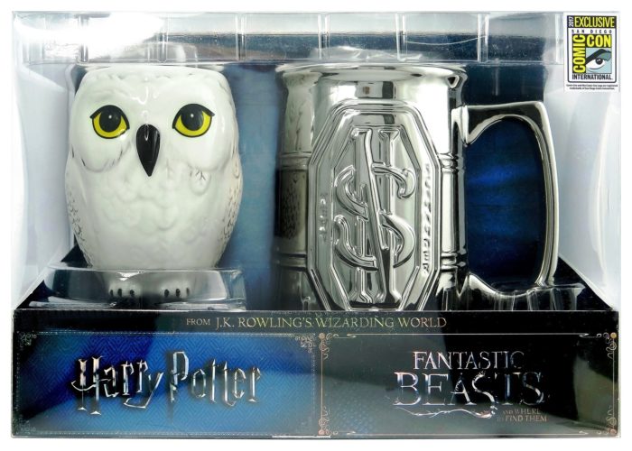 Monogram has announced their latest SDCC exclusive, a pair of mugs from Harry Potter and Fantastic Beasts. The set includes a white Hedwig owl mug and a silver embossed Newt Scamander mug. This set of mugs is limited to just 500 sets and is priced at $30.
