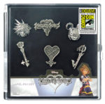 The Kingdom Hearts Pewter Pin 6 piece set features a Mickey head pin, Sora head, two key blades, heartless and a Kingdom Hearts logo. Limited to 500 sets, this set is exclusively made for SDCC and is priced at $30.
