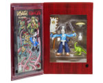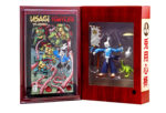 This exclusive item features the newly designed Usagi Yojimbo action figure in a 5” scale, dressed in his classic blue robe, and comes with his traditional Samurai swords. Also included are two additional exclusive, interchangeable Usagi heads, his pet Tokage lizard, and a flag with Usagi’s signature emblem. All this is presented in a collector edition 5th panel storybook package, with a re-run of the 1987 Comic Book “Leonardo Meets Usagi Yojimbo in Turtle Soup and Rabbit Stew”, and the 1989 Comic Book “The Treaty”.