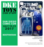 Special Ed Toys is back with the third incarnation of his Darth Trump figure. Hand cast and hand painted 3.75″ figure. It is limited to 50 pieces, signed and numbered on the back of the card. $110