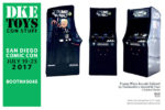 So Special Ed and Timebandits met this guy Carlos Flores who makes the coolest vintage arcade cabinets that are 3.75″ scale. They decided why not make one for Darth Trump to play? Edition of 25. They come boxed with a full color graphics card on top. Each one is signed and numbered by Special Ed. $45