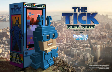 Breaking Games, an award-winning game publisher and manufacturer, announced they will be featuring the much-anticipated Amazon Studios and Sony Pictures Television’s The Tick figure as part of Breaking Games’ Pixel Party toys at this year’s San Diego Comic-Con, Booth #1234. The Tick Pixel Party figure will be available for $19.99 during San Diego Comic-Con (July 20-23). Fans can pre-order after San Diego Comic-Con on BreakingGames.com. The Tick Pixel Party toy will be nationally available in late Q3 on Amazon, and in GameStop and Think Geek locations across the U.S.