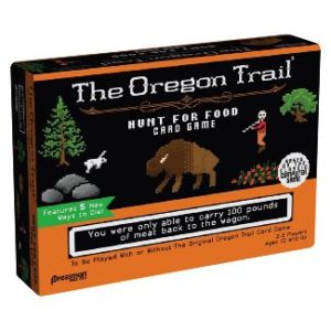 If you thought The Oregon Trail game was fun, now Pressman Toy is bringing the classic computer game to life again with The Oregon Trail: Hunt for Food Game! Gather your fellow travelers, hunt for wild game, and search abandoned wagons. You must collect 600 pounds of meat to win. Play this game on its own or as an expansion to The Oregon Trail Card Game. Can you survive? For 2-6 Players, Ages 12 & Up