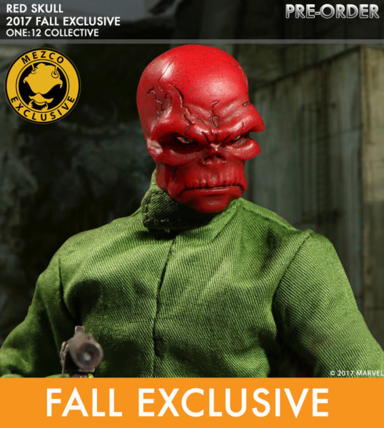 Each One:12 Collective Red Skull Fall Exclusive figure is packaged in a collector friendly box, designed with collectors in mind, there are no twist ties for easy in and out of package display. This One:12 Collective Red Skull Fall Exclusive available for pre-order is only available through the Mezco Toyz website or the Mezco Toyz NYCC booth # 1954 and is expected to ship: Oct – Dec 2017.