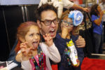 Writer and director, James Gunn, meets with Evie Judkins, left, and Mia Judkins, right, at HASCON Ð the first-ever FANmilyª event from Hasbro, Inc., on Saturday, Sept. 9, 2017, in Providence, R.I. (Stew Milne/AP Images for Hasbro, Inc.)