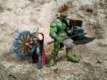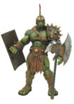 This exclusive figure of Planet Hulk depicts him in his gladiator armor from the character-redefining “Planet Hulk” storyline in The Incredible Hulk comics. Rocketed toward an extra-terrestrial paradise by Marvel’s greatest heroes, Hulk instead crash-lands on the cruel planet Sakaar, where he is forced to fight in the arenas for the enjoyment of the crowd. The figure stands approximately 10 inches tall (11.5 inches with his feather crest) and features 16 points of articulation, allowing him to strike a wide variety of combat-ready poses. Accessories include an 8-inch-long battle axe and a 5-inch tall spiked shield.