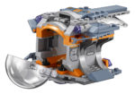 - The Guardians’ Ship features an opening cockpit for the space scooter (and 2 minifigures sitting on the scooter), flip-up windshield, opening rear compartment with 2 minifigure seats, removable roof and space for the Infinity Gauntlet and stand, 2 stud shooters, adjustable wings and a connection point for the escape pod (featured in 76102 Thor’s Weapon Quest).