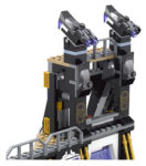 - Wakandan wall features a lever-operated opening gate, tower with 2 rotating, dual studshooting turrets, hidden disc shooter, hinged wall section, Wakandan lab with minifigure seat, desk and 2 computer screen elements, flip function and the Infinity Stone element.