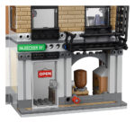 - Pizzeria features an opening door, exploding window function, pizza oven, buildable shawarma and assorted elements including a pizza, pizza peel and fire extinguisher.