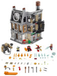 - Sanctum Sanctorum features an entrance hall with an opening door, weapon rack with an axe and sword, and an armchair; library with an exploding wall function, hidden Infinity Stone element and stand, bookshelves, opening chest with 2 daggers inside and weapon rack with a staff and spear; and Doctor Strange’s top-floor office with a new-for-March-2018 decorated Sanctum Sanctorum window, desk, bookshelves and buildable candlestick.