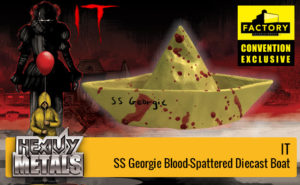 Based on the Georgie’s paper boat from the blockbuster hit movie IT, this scaled 3.5″ Heavy Metals™ diecast exclusive is TERROR-iffically detailed in blood-spatter. The perfect collectible for any member of the Losers Club.