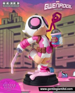 The Gwenpool Marvel Animated Statue will be available exclusively at the Gentle Giant booth (booth #3513) at San Diego Comic Con July 18th-22nd. However, they have set aside a limited quantity of them for pre-order for shipment after the show.The Gwenpool Animated Statue pre-order is currently open and she is priced at $64.99.