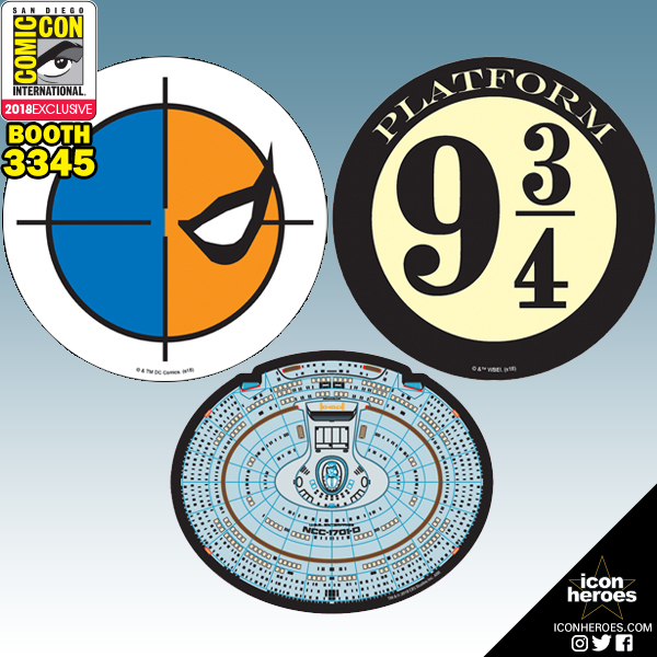 For their fifth SDCC Exclusive, Icon Heroes has revealed an assortment of 9″ wide mouse pads. Each is priced at $15 and is limited to 100 pieces. They are available with a Deathstroke design, the Enterprise-D saucer design or Harry Potter’s Platform 9 3/4 design.
