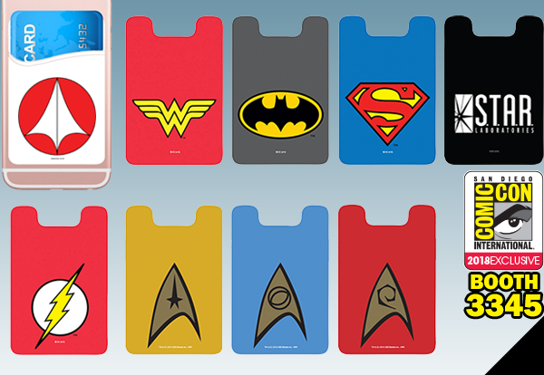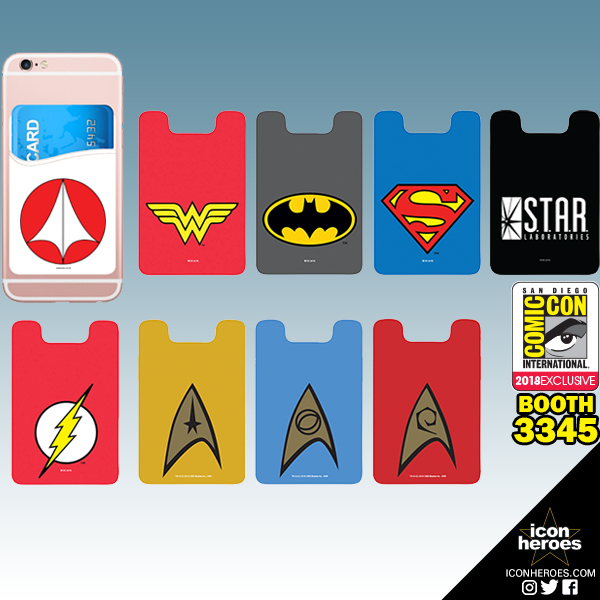 Icon Heroes has announced their latest SDCC offering – an assortment of smart phone card holders. If you’ve not seen them before, they’re self-adhesive silicone pockets that hold your ID, credit cards, cash or more. Give your phone some extra style and lighten your pockets at the same time. Priced at $15, they will be available in Batman, The Flash, Robotech, S.T.A.R. Labs, Star Trek Insignias, Superman, and Wonder Woman styles.