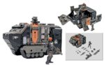 The Stealth Chapel HETT 600e set comes with an Anti-tank rocket launcher vehicle able to transform into two different modes: tank and base mode. Also included is a highly poseable 1:28 scale military pilot with 21 points of articulation. Additional accessories include a submachine gun, minigun, SA sword and pistol cannons.