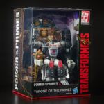 Hasbro today announced the ‘Throne of the Primes’ SDCC exclusive. Released as a special part of the ‘Power of the Primes’ toy line, this set includes Optimus Primal (who, with the use of the Evolution Armor can turn into Optimal Optimus) and four Prime Masters – Nexus Prime, Amalgamous Prime, Prima Prime and the Legendary 13th Prime. The set also includes the Scepter of Sparks which holds four Prime Masters and the ‘Halo of Primus’ display provides a place of Optimus Primal to sit with twelve of his favorite Prime Masters.
