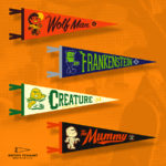 - Universal Monsters – High quality screen printed 7″ x 21″ felt pennants (The Wolfman, Frankenstein, Creature From The Black Lagoon, The Mummy) – $25 each