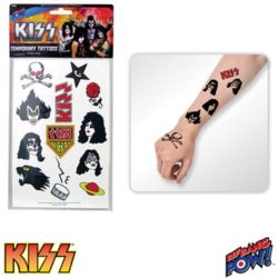 Rock out with these KISS-inspired temporary tattoos from Bif Bang Pow!. The 12 tats in this KISS Temporary Tattoos set include images of each band member – The Demon, The Starchild, The Spaceman, and The Catman – from the Love Gun album era, as well as KISS logos and more! Includes 4-sheets of temporary tattoos.