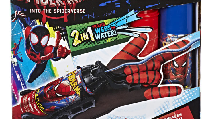 sling webs like the hero in SPIDER-MAN: INTO THE SPIDER-VERSE. Incudes glove, gauntlet, water canister, and a can of web fluid. Available at most major retailers and on HasbroToyShop.com.