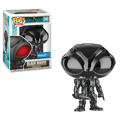 Finally for Pop!s, look for Aquaman styled as an Atlantean Gladiator, Aquaman wearing his iconic gold and green hero suit and holding a trident with his face exposed, Atlantean Princess Mera, Ocean Master Orm and Black Manta.GameStop will offer a Mera in gown with headpiece and Walmart will have an patina finished Arthur Curry Pop! as well as a very sleek Black Manta Pop!. Target will offer an all-black Black Manta.