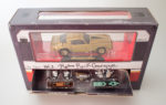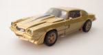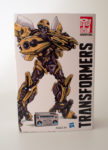 A movie Bumblebee makes up the rest of this SDCC exlusive set. This Bumblebee is based on the 1978-1981 Camaro Z28 and is molded in a deep gold color. As expected Bumblebee’s car mode is spot on and the color scheme and deco are perfect. He looks great as a car. The transformation from car to robot is a nice level of difficulty…it did take a few minutes of futzing around to figure out his legs. In robot mode, Bumblebee looks quite a bit like his on-screen counterpart. The figure’s silver accents provide a great contrast from the predominately gold and black color scheme. Bumblebee features a cannon that can be swapped out for his arm, providing some good options for display.
