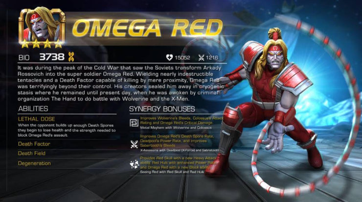 Omega Red is the latest character to join Kabam’s Mavel Contest of Champions mobile game. This popular mutant can join your squad and destroy your opponents. Check out Omega Red’s bio below and grab the game in both Apple’s App Store or Google Play.