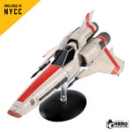 Fleeing the Cylon tyranny, Eaglemoss Hero Collector escapes to Booth #1520 at the New York Comic Con with new ships from both the classic 1978 and renowned 2004 Battlestar Galactica TV series. Developed in collaboration with members of the modern Galactica VFX team, each ship in the Battlestar Galactica: The Official Ships Collection measures between 8 and 11 inches long, is crafted from die-cast metal and high-quality ABS materials, and comes with a 16-page magazine that profiles the ship and features interviews with the show’s creators including Ronald D. Moore.