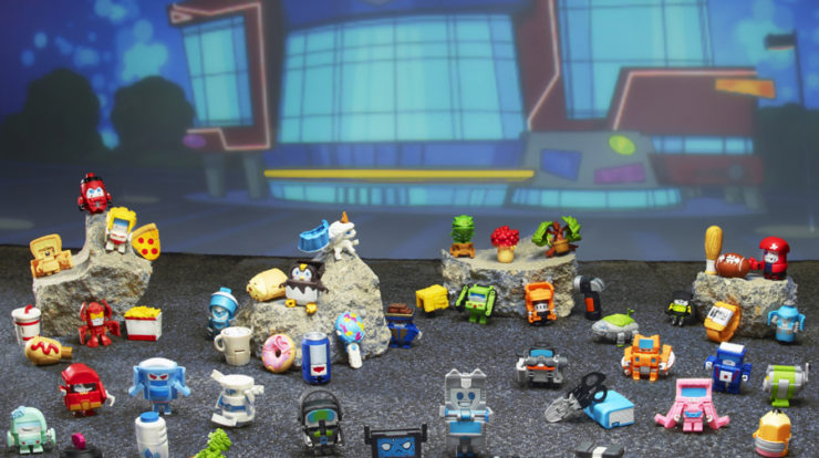 Hasbro today sent over news of a brand new Transformers line – BotBots. BotBots are mischievous little robots who came to life when a cloud of Energon decended on a shopping mall. Everything including candy, sports equipment, electronics, school supplies, and more came to life as little Transformers robots. The Botbots all belong to tribes, based on the their product type – “Sugar Shocks” (sweet treats), the “Backpack Bunch” (school equipment), the “Toilet Troop” (bathroom items), the “Techie Team” (electronic gadgets), the “Greaser Gang” (fast food), the “Shed Heads” (gardening gear), and the “Jock Squad” (sporting goods). The first series includes 61 unique characters, each with a robot mode and an alt. mode with a 3-5 step transformation. These will be hitting stores this winter and will be available as sing blind bags, 5-packs and 8-packs. Check them out below and keep reading for full details on all the sizes and pricing you’ll find in your favorite stores soon.