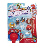 Not long ago and somewhere close by, a glowing mist filled with TRANSFORMERS energy called ENERGON came down from the sky and covered a shopping mall. The things inside came to life as little TRANSFORMERS robots! These bots can hide in plain sight as everyday objects, meaning no one knows what’s a bot and what’s not! Mischievous, funny, and super silly, these are… BOTBOTS! These 1-inch tall figures change from totally normal stuff to little robots in 3 to 5 easy steps. The JOCK SQUAD is crew of super sporty bots who love to win and are always ready to gear up and get their game faces on. JOCK SQUAD collection pack includes 8 randomized BOTBOTS figures: 2 from the JOCK SQUAD, 1 from the LOST BOTS, and 5 from other themed teams! Series 1 Jock Squad characters are LACEFACE, BATSBY, KIDD KLOBBER, PUCKSIE, FIT NESS MONSTER, and ARCTIC GUZZLERUSH! Please note that not all JOCK SQUAD characters can be found in this JOCK SQUAD themed pack. Look for other JOCK SQUAD characters in blind bag assortment, 5-pack assortment themed packs, and other 8-pack assortment themed packs (each sold separately, subject to availability) to find different characters. Available at select retailers and on HasbroToyShop.com.