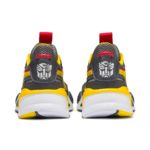 Equipped with PUMA’s patented RS technology on the midsole, the upper is decked with mesh, textile and nubuck overlays. The RS-X Transformers Bumblebee in Quiet Shade – Cyber Yellow and the RS-X Transformers Optimus Prime in Dazzling Blue – High Risk Red are nods to the signature colors of the two protagonists. The RS PUMA branding appears on the molded sockliner while the shoe tongue features the collab logo. The Transformers Autobot symbol fitted on the heel piece accentuate the style.
