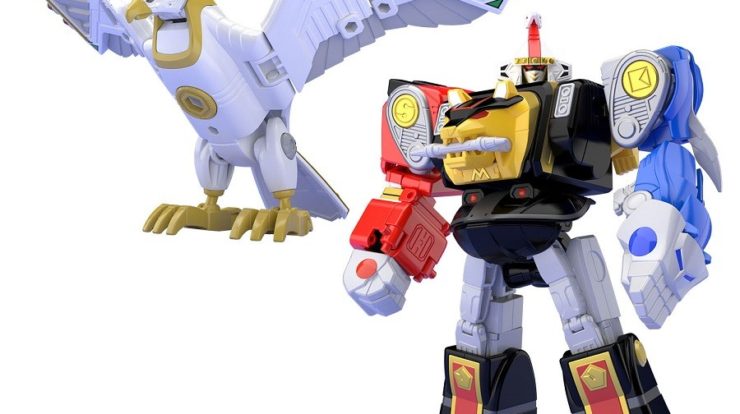 Straight out of Season 3 of Mighty Morphin Power Rangers comes the Shogun Megazord. Fans can combine the Shogun Zords to build the impressive Shogun Megazord. Set comes with Shogun’s main weapon accessory, the “Fire Saber.” The Shogun Megazord can be combined with the White Ninja Falconzord to form the mighty Shogun Megafalconzord and the powerful Ninja Megafalconzord.