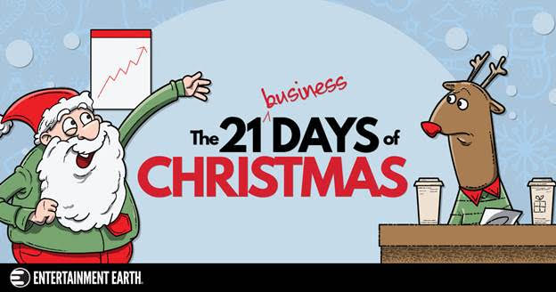 It might look like someone got the traditional 12 days of Christmas backward. It might sound like the clunkiest way to commemorate the season. But it actually means Entertainment Earth is about to boost your gift search into warp speed. You see, Santa may be watching you all the time, but your boss isn’t. Why not take some time during your break or lunch hour (wink wink) to shop online for unique and must-have collectibles during The 21 Business Days of Christmas?