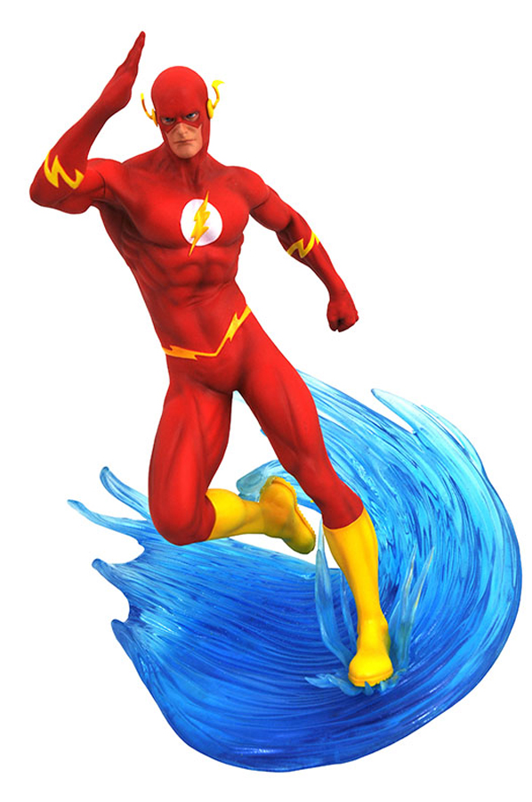 A Diamond Select Toys release! The DC Gallery line is picking up speed! This 9-inch scale PVC diorama of the Flash racing across a wave is the latest in the DC Gallery line. Made from high-quality plastic, this detailed sculpture delivers the look of a resin statue at a fraction of the price, and is in scale to all Gallery and Femme Fatales PVC dioramas. Flash Fact: It comes packaged in a full-color window box! Designed by Caesar. Sculpted by Joe Menna. (Item #DEC182503, SRP: $45.00)
