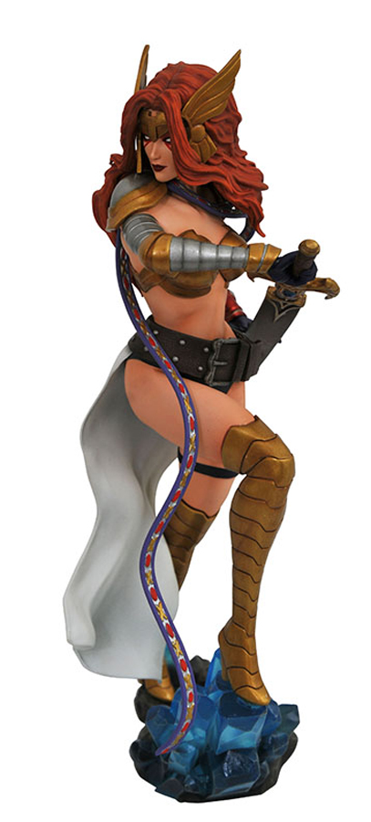 A Diamond Select Toys release! She’s no angel! The Asgardian sister of Thor, having defeated her brother in battle, now takes on the Marvel Gallery line of PVC dioramas! Standing on a crystal-sprouting rock formation, Angela prepares to draw her sword and commence what is sure to be another victory. Measuring approximately 10” tall, this PVC sculpture comes packaged in a full-color window box. Designed by Uriel Caton, sculpted by Alejandro Pereira. (Item #DEC182506, SRP: $45.00)