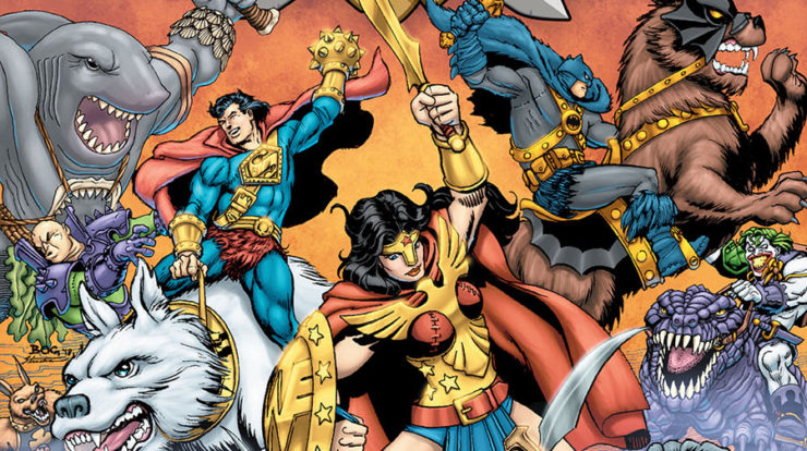 The 100-page one-shot is rooted in the sword and sorcery genre and creates a barbarian mythos behind the Funko action figures, presenting glimpses into the reimagined backstories and superpowers of Batman, Wonder Woman, Superman and other iconic DC characters.